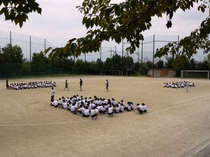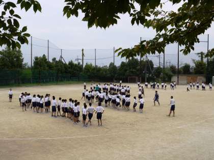 本日1・2限,1年生の学年合同体育が行われました。入場行進の練習から始まり,徒競走の招集確認,学年種目「大縄跳び」の練習へと進んでいきました。大縄跳びは,クラス全員の息がぴったりと合わないと,うまく跳ぶことができません。クラス一丸となって頑張ってください!