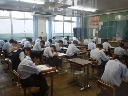 本日から第3回定期テストが始まりました。朝からあいにくの雨模様でしたが,生徒たちは集中して取り組んでいました。明日は最終日。最後まであきらめずに頑張りましょう!明日の予定は次の通りです。