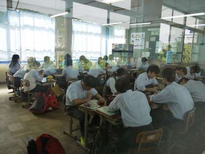 本日1限,各学年で道徳の授業を行いました。1年生は「合唱コンクールのダイヤモンドランキング」を教材に,合唱コンクールを成功させるために大切なことは何かを考えることで,集団としての力を高めるために必要なことを考えました。2年生は持ち回り道徳で,クラスごとに違う教材を用いて道徳授業を進めました。3年生は「人が暮らすために何が必要なんだろう」という映像教材を用いて,よりよい社会を築くためにはどのように社会に参画していくことが大切かということについて考えました。今日の授業でも「コの字型」の机の配置やグループでの話合いなど,交流を深めるための工夫が各クラスで見られました。