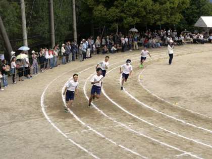 「男子学級対抗リレー」です。クラスの意地をかけて,全力疾走です。