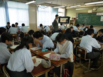 本日1限,各学年で道徳の授業を行いました。1年生は「違いを乗り越えて」を教材に,日本人と外国人が本当の意味でお互いの文化を尊重するとはどういうことか考えました。2年生は持ち回り道徳で,クラスごとに違う教材を用いて道徳授業を進めました。3年生は「みんなの自由な公園」という教材で,自由と責任について考えました。どの学年でも,じっくり考えしっかり交流する生徒たちの姿が見られました。