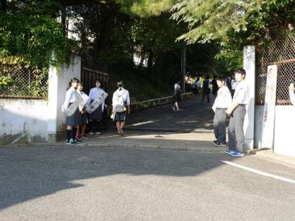 選挙の立候補者たちは,毎朝校門付近に立って,登校する人たちにアピールをしています。次の旭丘中学校生徒会を担う人たちを決定する大切な選挙です。各自の思いをしっかりと伝えてほしいと思います。