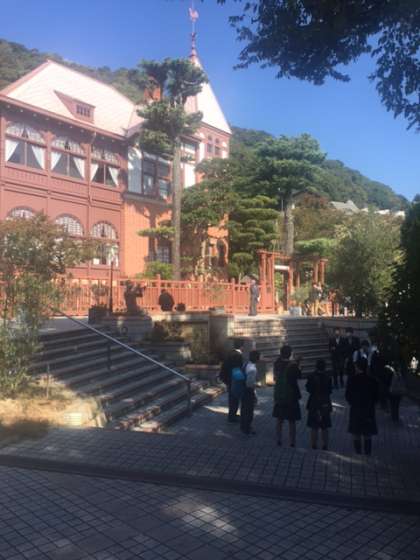 午前中の班別研修の様子です。異人館付近を巡っています。
