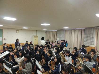 本日1月14日(土)午後,校区の3小学校4〜6年生の児童15名に来ていただき,2回目の吹奏楽の合同練習会を行いました。小学生は中学生に教えてもらいながら,いろいろな楽器の演奏に一生懸命に取り組んでいました。次回は2月4日(土)です。また一緒に楽しく練習しましょう!そして,3月の「ジョイントコンサート」に向けて頑張りましょう!