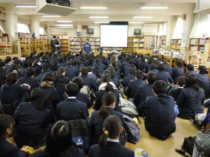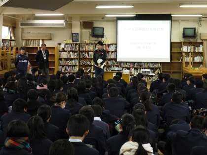 いよいよ明日から京阪神の私学入試が始まります。本日5限,受験する3年生が図書室に集合して事前指導が行われ,校長先生と学年主任の先生からの激励と,進路指導主事の先生から入試に向けての注意等の説明がありました。明日は,どうやら雪が降りそうです。受験生の皆さん,早めに家を出て,余裕を持って会場に着けるようにしましょう。教職員一同,皆さんの健闘を心から願っています。がんばれ旭中生!!