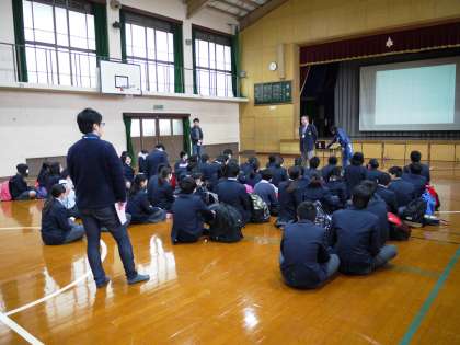 本日昼,明日7日(火)に実施される公立高校中期選抜の事前指導が行われました。校長先生や学年主任の先生から激励の言葉がかけられ,進路指導主事の先生からは当日の注意事項などのお話しがありました。いよいよ本番です。自分の力を信じて,最後まで諦めず頑張ってください!