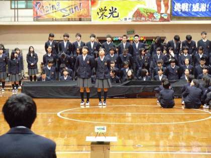 2年生は,「みんながみんな英雄」の曲に合わせたハンドダンスと「つばめのように」の合唱で,卒業していく3年生にエールを送りました。