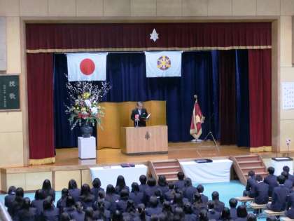 校長先生は式辞の中で,平尾誠二さんと松下幸之助さんの言葉を引用して,「挑戦」して人生を切り拓いていくことと,他の人に「感謝」することの大切について語られました。PTA会長から頂いた祝辞では,「今日できたことを数えて明日へと進んでいって欲しい」というメッセージが伝えられました。また在校生の送辞は,卒業生との思い出を振り返りながら,これからに向けてのエールを送る素晴らしい内容でした。