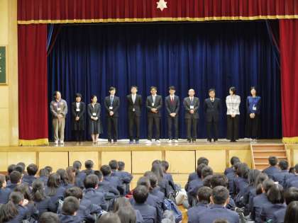 平成29年度の始業式が行われました。校長先生のお話に続き,2・3年生を担当する先生方が紹介されました。1年間,ともに頑張りましょう!