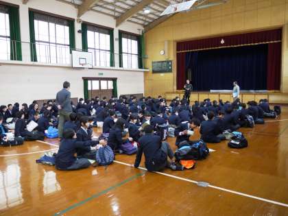 本日5限,「宿泊学習会」の最終確認を行いました。学年の先生方から明日以降の日程や持ち物の確認がされたあと,校長先生からは激励の言葉がありました。これまでの事前学習が生かされ,一生の思い出に残る,実り多い宿泊学習会になることを願っています。明日は午前7時30分に体育館に集合です。遅刻なく全員がそろって出発できるようにしましょう!