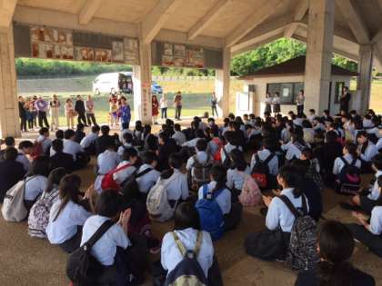 入市式の様子です。終了後,生徒たちはそれぞれのホームステイ先に向かいます。明日の午前中は,ホームステイ先での体験学習になります。