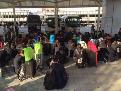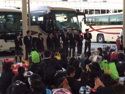 伊丹空港での解団式の様子です。宿泊学習実行委員の皆さん,ご苦労様でした。この後伊丹空港をバスで出発し,午後6時過ぎごろ到着の予定です。