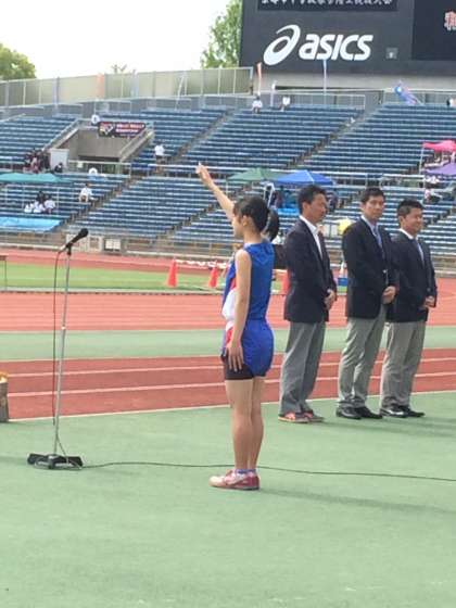 5月3日(祝)に西京極陸上競技場にて大会が開催されました。昨年度女子総合優勝ということで,競技に先立ち,本校の女子キャプテンが選手宣誓を行いました。結果は以下の通りです。