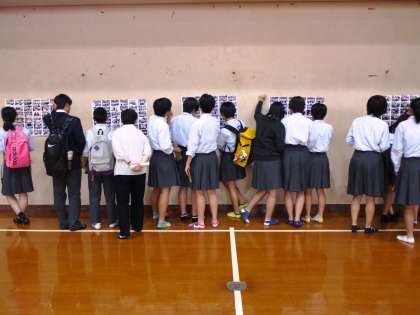 本日4限,3年生は体育館に掲示された宿泊学習の写真を見て,購入したいものを選びました。申込みは23日(火)になります。よろしくお願いします。