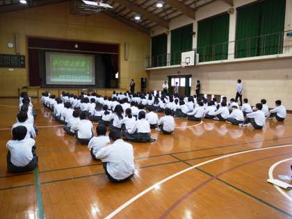 本日4限,2年生は講師の方をお招きして非行防止教室を行いました。最近,中学生が巻き込まれることが増えているネットトラブルを取り上げ,LINEなどを介して起こるいじめやいやがらせが,心や体を傷つける取り返しのつかない結果につながることを,お話しいただきました。今日の学習を今後の学校生活に生かし,みんなが安心して過ごせる環境を一緒につくっていきたいと思います。