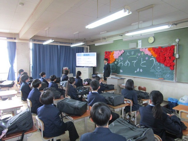 入学式前に各担任が教室で、自己紹介や入学式の説明をしました。