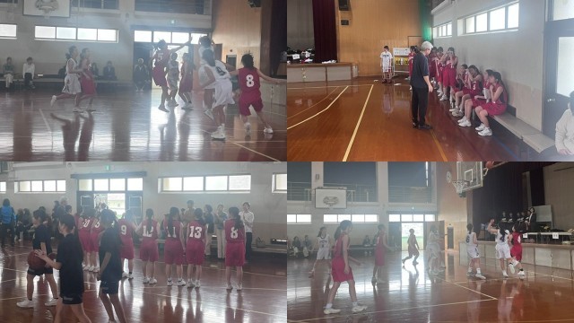 開始直後に先制され、ファールでダメ押し、そこから一方的に攻め込まれ点差があいてきました。とにかくシュートをしようと指示があり、選手たちもそうしようとしましたが、なかなかすぐには上手くいきませんでした。そんな中、やっとフリースローで得点できました。後半はたくさんこの選手が交代しながら、全員バスケで取り組みました。第3クォーターあたりから積極的な姿勢が見られるようになり、やはり経験の大切さがうかがえました。選手たちは、この試合で成長する姿を見せてくれました。第4クォーター最後の3分で動きも積極的になり、セットシュート、ランニングシュートが立て続けに決まりました。