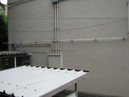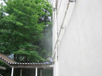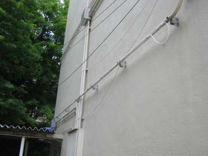 1年生の校舎の壁面に電気工事の業者の方に