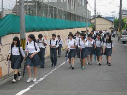 多くの生徒は傘を持参しています
