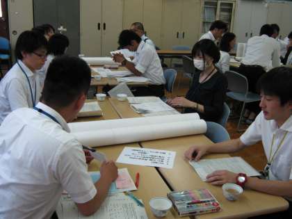 研究授業後、研究協議が行われました。会議では自分たちが作ってきた指導案を持ち寄り意見交流したり、本日の授業への協議もなされました。非常に有意義な時間でした。