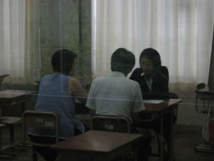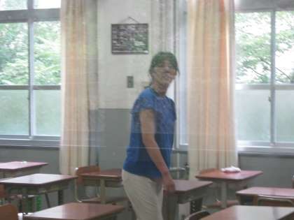 3年生です。懇談会が終わって机を並べなおしている場面もありました。