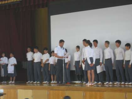 本日1限体育館で修了式が行われました。まずは、表彰式の様子です。