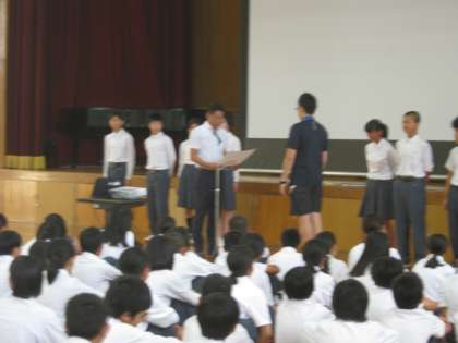 です。その後、1期の振り返り、いじめアンケートの結果について、夏休みの過ごし方についてのお話がありました。