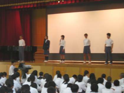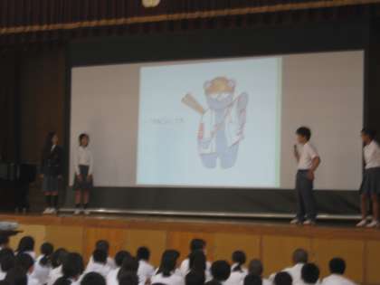 続いて各委員長からの報告がありました。その中で文化委員長から校内で募集していた「きぬキャラ」が発表されました。そのキャラクター名は「きぬごん」です。これからの様々な取組でこのキャラクターが活躍します。