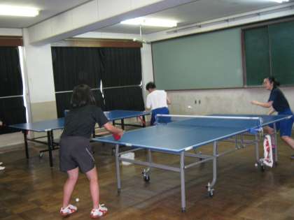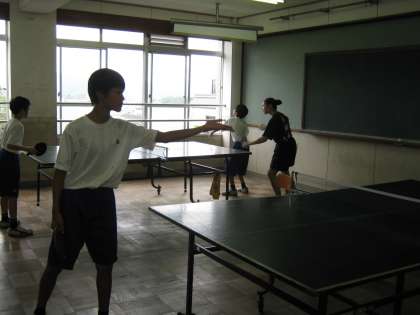 卓球部の様子です。卓球部は個人戦で近畿大会に出場する生徒がいます。連日、猛暑の中室内で練習しています。下の写真は、窓を開けると風の影響で正しい練習ができないため、窓を閉め切っての練習です。生徒たちは黙々と練習しています。