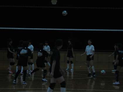 女子バレー部です。夏季大会で素晴らしい戦いを発揮した女子バレー部ですが、新チームに変わりました。室内での蒸し風呂のような状態の中での練習です。写真からもその状況が感じられます。