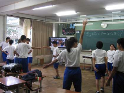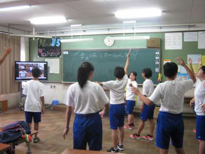 10月12日(木)に行われる体育大会で披露される応援演舞の練習がスタートしました。昨年から取り組んでいる縦割りの取組です。1・2年生に教えるために3年生の代表者達は頑張っています。当日が楽しみです。