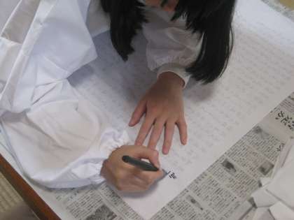 大将軍八神社での様子です。本日は祝詞の奉製(祝詞と写す作業)をしました。その後、祝詞を読む練習もしました。御朱印を書いたり、巫女体験をさせていただきます。