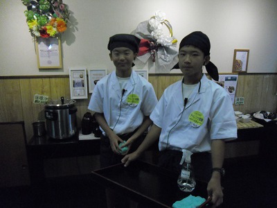 お食事処錦鶴での様子です。本日は、厨房でお米を洗ったり、接客や後片付けをしました。ユニフォームも似合い様になっていたようです。