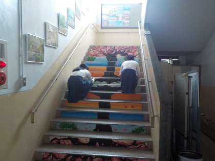 美術工芸部が文化学習発表会にあわせて「階段アート」制作しました。とてもきれいな「階段アート」です。載せることが遅くなって申し訳ありませんでした。