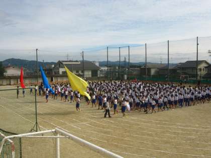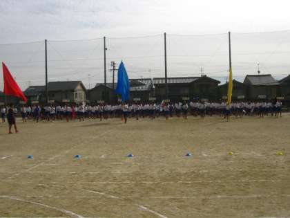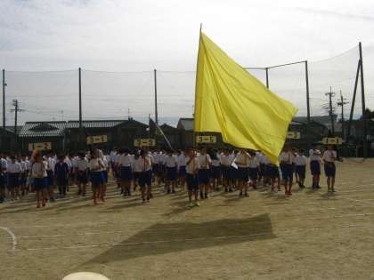 本日5、6限体育大会の予行を行われました。まずは、開会式と閉会式の流れを把握しました。生徒の放送で、スムーズに行われました。入場行進の様子です。