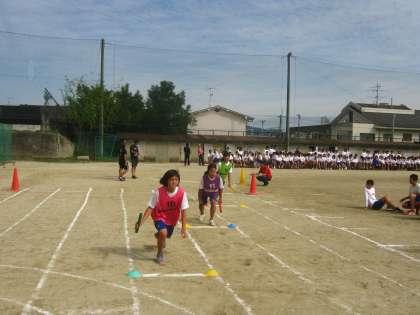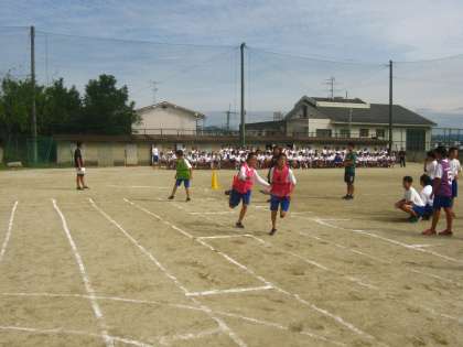 次に色別対抗リレーを行いました。Aグループの様子です。