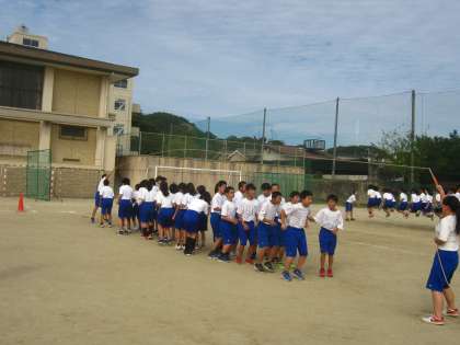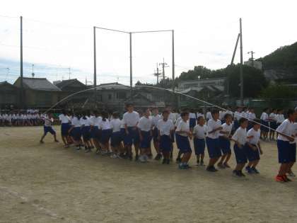 次に大縄飛びの練習を1、2、3年生の順に行いました。1年生の様子です。