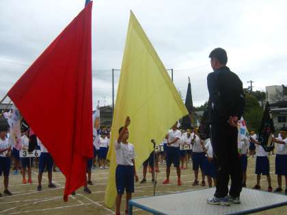 続いて選手宣誓です。体育委員長が立派に宣誓してくれました。