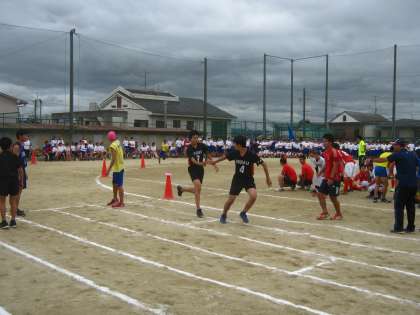 3レース目は男子バスケットボール部、男子バレーボール部、男子水泳部、男子卓球部によるリレーでした。