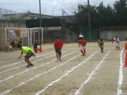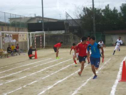 最終4レース目は男子陸上部、男子ソフトテニス部、野球部、サッカー部、教職員選抜チームによるリレーでした。