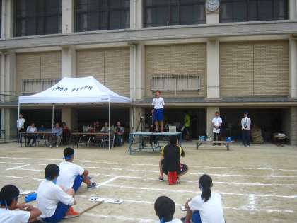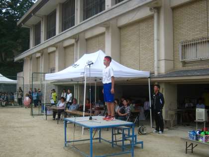 続いて、体育委員長による閉会の言葉がありました。「この体育大会が一番良い思い出になりました。」との充実感にあふれた一言が印象的でした。次に校長先生からの講評がありました。みんなが一生懸命に取り組めた体育大会。3年生が代表になり下級生を良くまとめてくれた、本当に「チーム衣笠」を感じることができた体育大会でしたと褒めてもらいした。