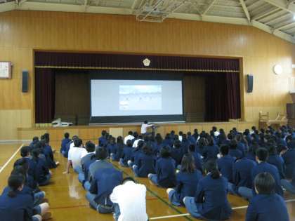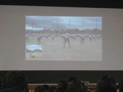 本日4限、3年生は体育館で文化学習発表会と体育大会の振り返りを行いました。文化学習発表会の学年の出し物のVTRを見たり、体育大会の応援演舞のVTRを見ました。そして、みんなの頑張りを認め合いました。