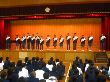 次に、選挙管理委員会から生徒会立候補者の紹介と選挙についての話がありました。