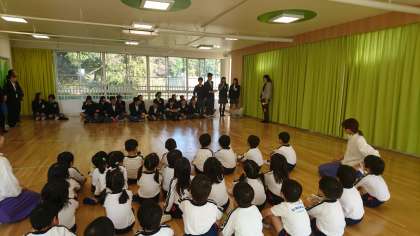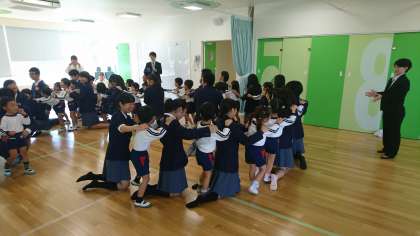 昨日から、家庭科の授業で、衣笠幼稚園・衣笠こども園様のご協力を得て「保育実習」が始まりました。手作りの名札と夏休みに製作したおもちゃを持参し園児との交流を行いました。最初はお互いに緊張気味でしたが、「じゃんけん列車」「おもちゃ遊び」と交流が進むにつれて笑顔があふれて優しい表情につつまれました。