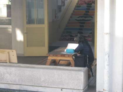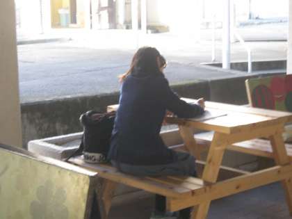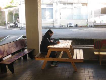 朝7時50分の風景です。職員室前のベンチで勉強しています。放課後もこの風景が続いています。肌寒くなってきましたが、黙々と取り組んでいます。がんばれ!!