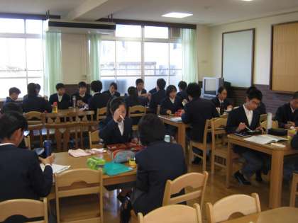 本日昼休み、ランチルームで生徒会本部役員の新旧引き継ぎが行われました。それぞれの現委員長から新委員長に必要な資料と共に活動内容の詳しい説明がありました。