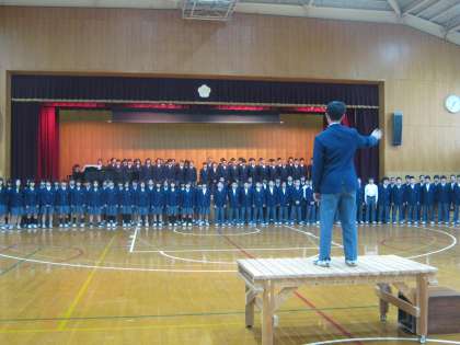 昨日に引き続き本日5限1・2年生は3年生を送る会の練習を行いました。体育館で前半は1年生が、後半は2年生が練習をしました。各学年とも発表内容は昨日よりも良くなっていました。明日はいよいよ本番です。1・2年生の皆さん今までお世話になった3年生に最大の感謝の気持ちを送りましょう。そうすればきっと素晴らしい送る会になると思います。楽しみにしています。