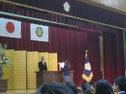 校長式辞、来賓祝辞、歓迎のことば、決意のことばと続き