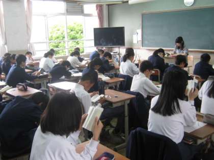 同じく2年の朝の学活の様子です。どのクラスも穏やかな空気が流れます。一日のスタートがとっても落ち着いて、気持ちよく始まります。2年生はずいぶん大人の雰囲気がクラスから流れています。