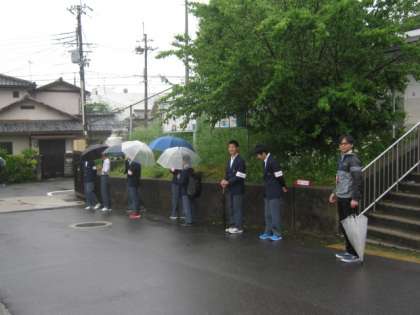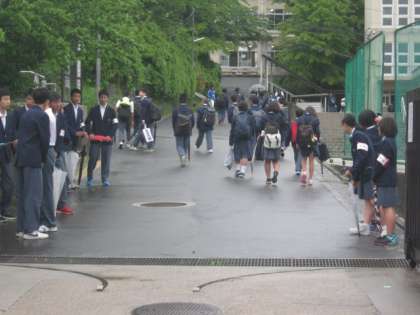 連休が終わり平常の学校生活に戻りました。あいにくの雨の朝です。5日ぶりの登校ですが生徒会本部の生徒は朝の「あいさつ」をちゃんと忘れずに、8時前には登校して準備をしてくれました。小雨の降る中の登校風景です。部活で頑張った生徒もたくさんいましたね。入賞した事も大切ですが、先輩・後輩とのきずなや仲間と喜びや悔しさを共にできたことは一生の宝物ですね。さぁ!今日から平常の授業です。